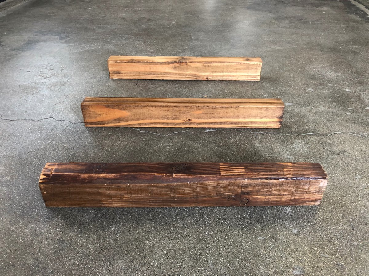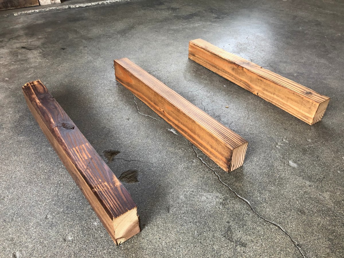 3面古材面の確保が難しいので、1面のみ古材面にして、2面は製材面となってしまいます。