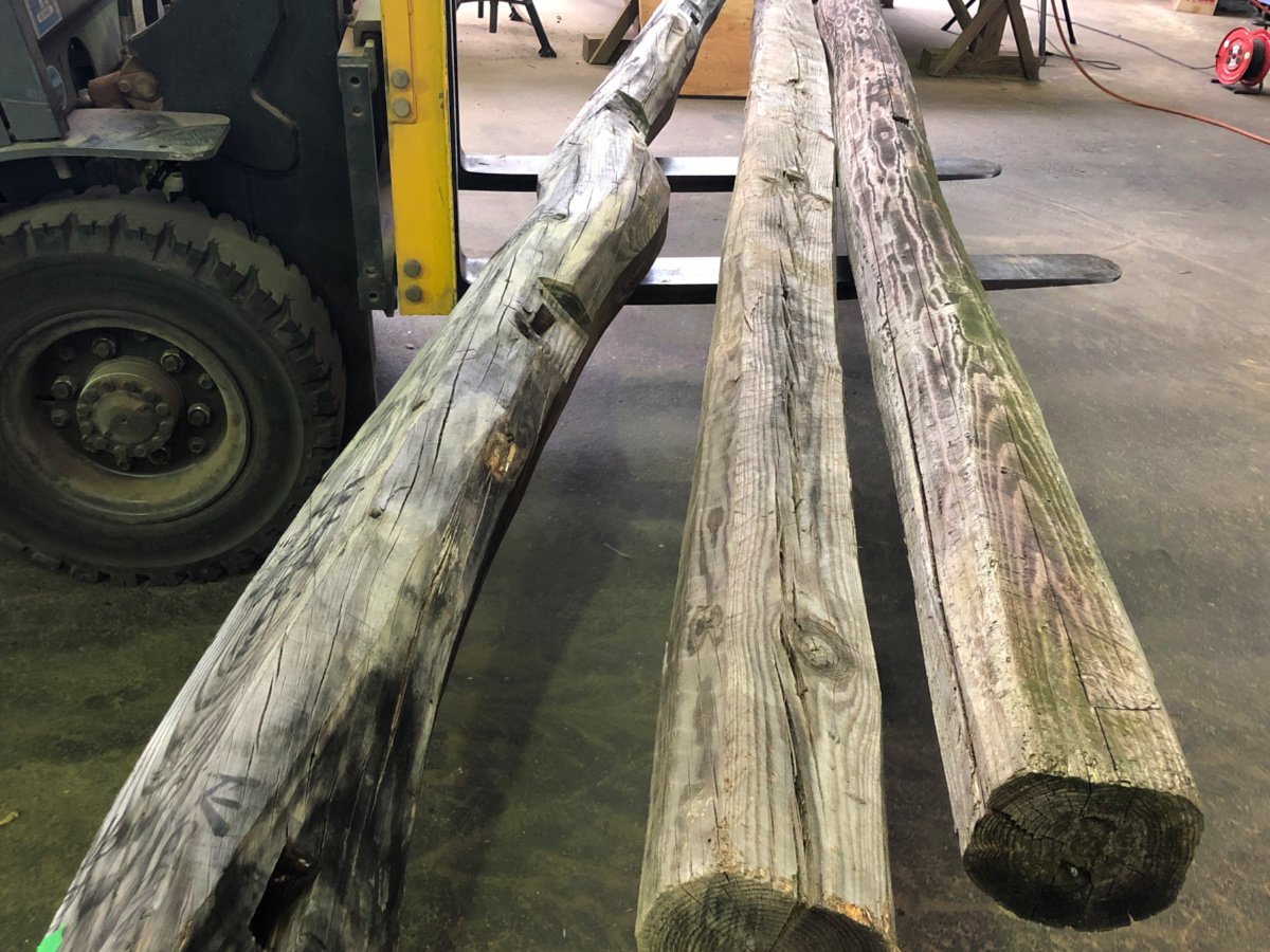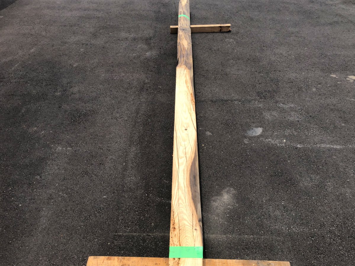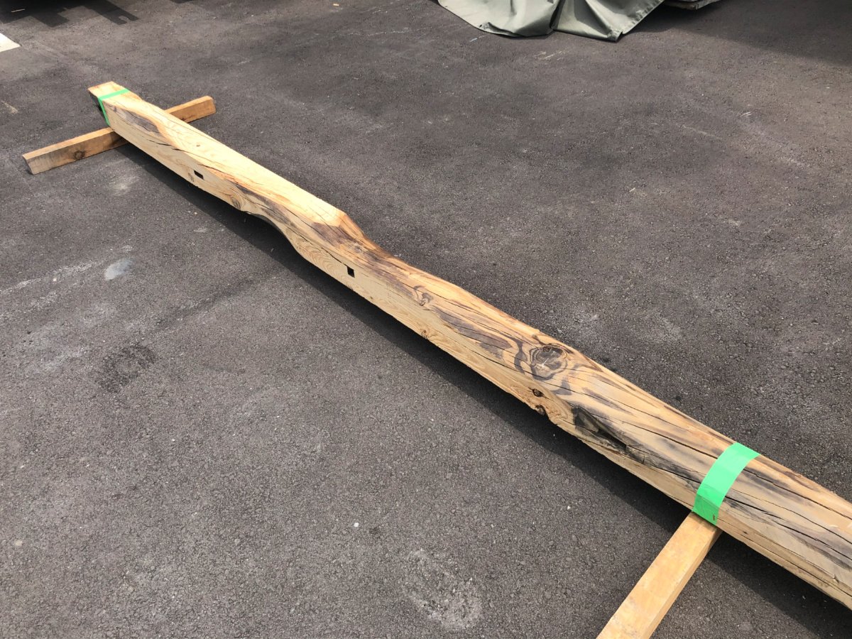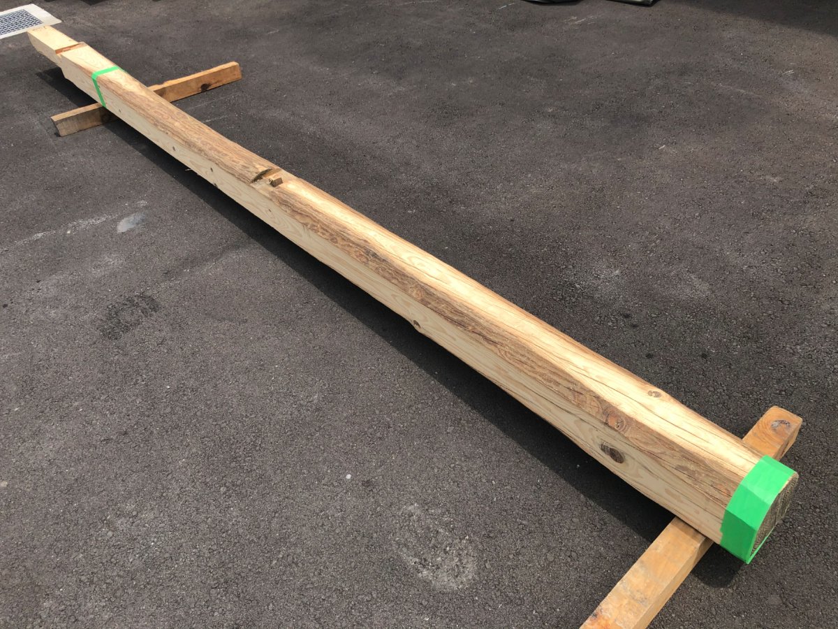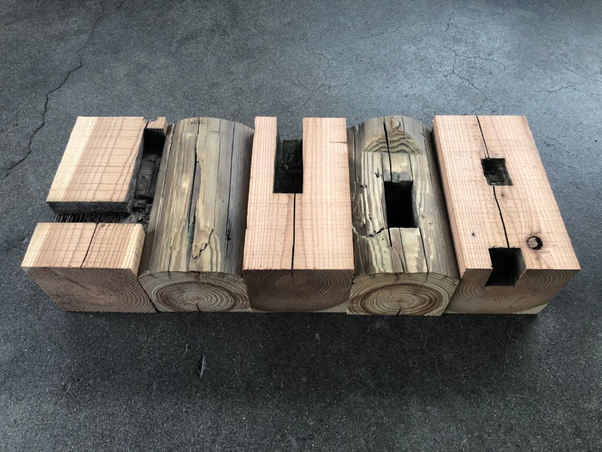 丸み、ほぞ穴、ひび割れ、古材の表情がしっかり残っていますが、寸法はご覧の通り均一になっています。