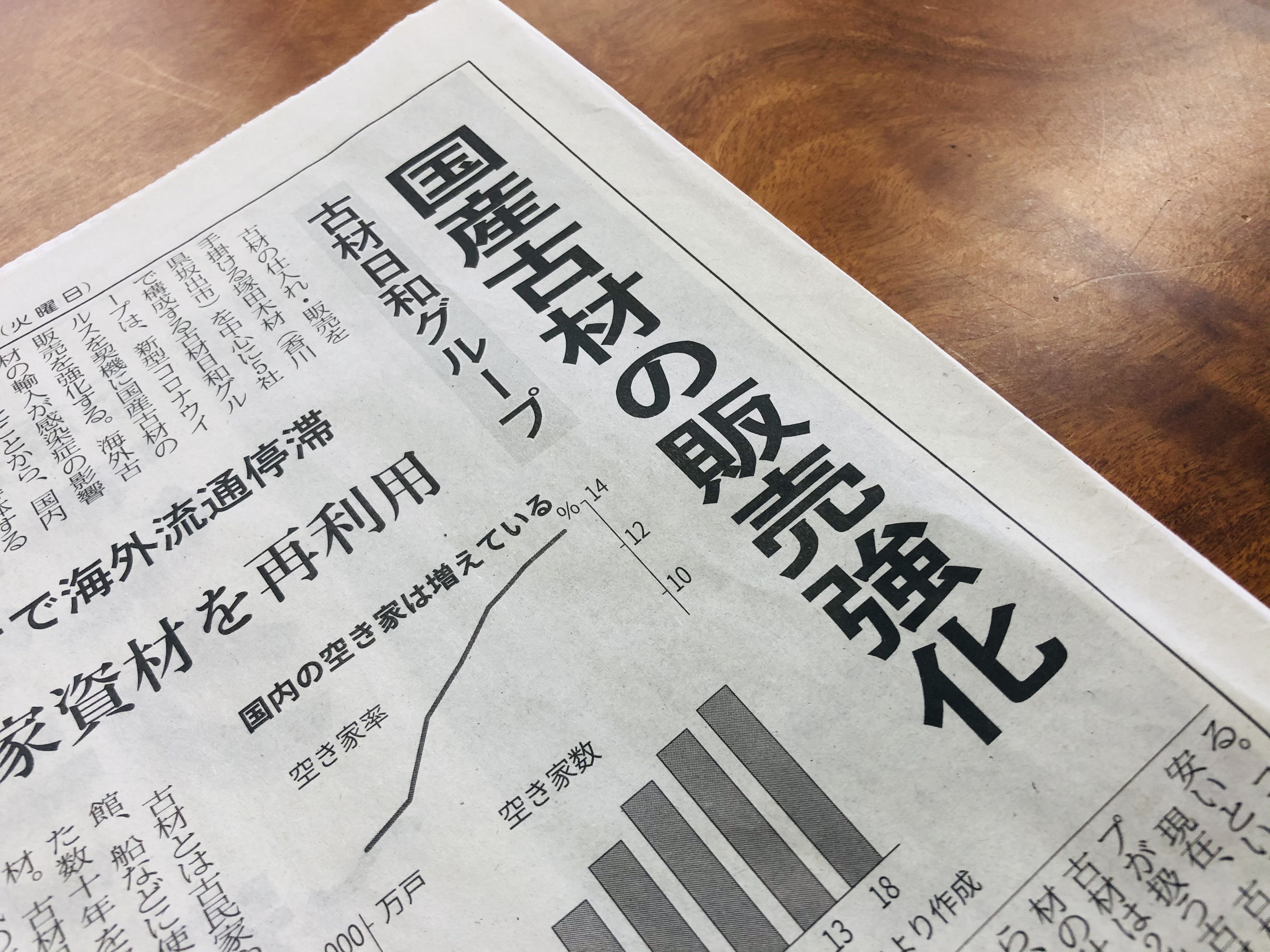 日本経済新聞さん、コロナの影響や空き家問題なども踏まえ、国産古材の取組の背景を丁寧に説明頂き、大変ありがたいです。古材事業をやっている私たちの方がむしろ参考になります。さすが全国紙ですね。長年連絡を取っていなかった友人からも連絡がきました(笑)