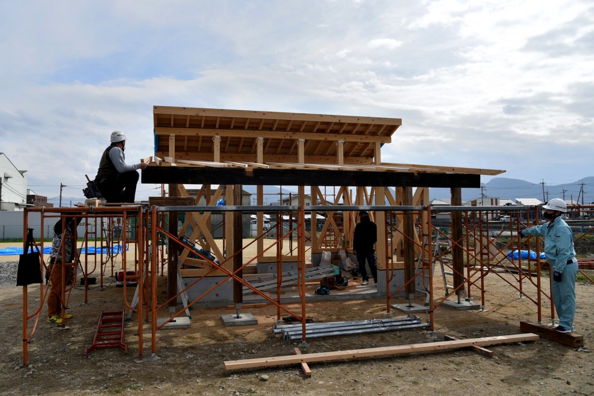 しっかりと古材の柱と梁を組み上げて、さらに刻む!刻む!刻む!