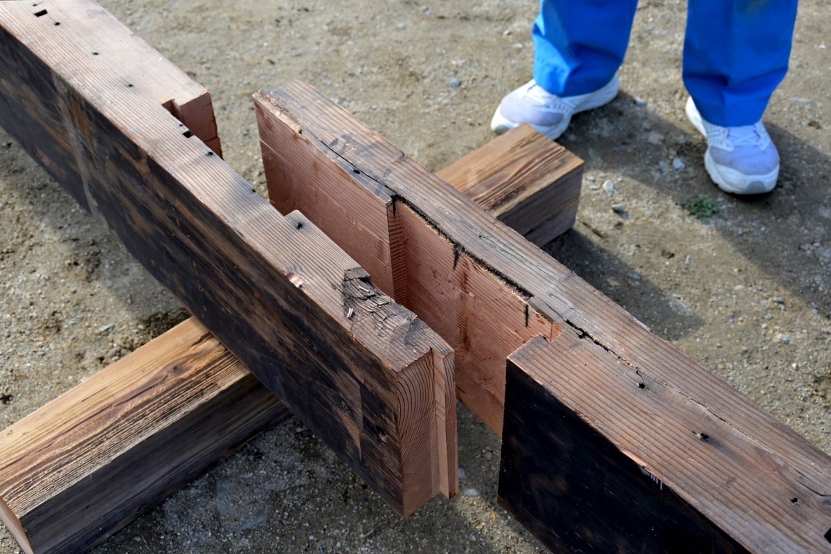 「あの~、高校の建築科の者ですが、、勉強の為に生徒に古材を見せてあげたいのですが、よろしいでしょうか?」