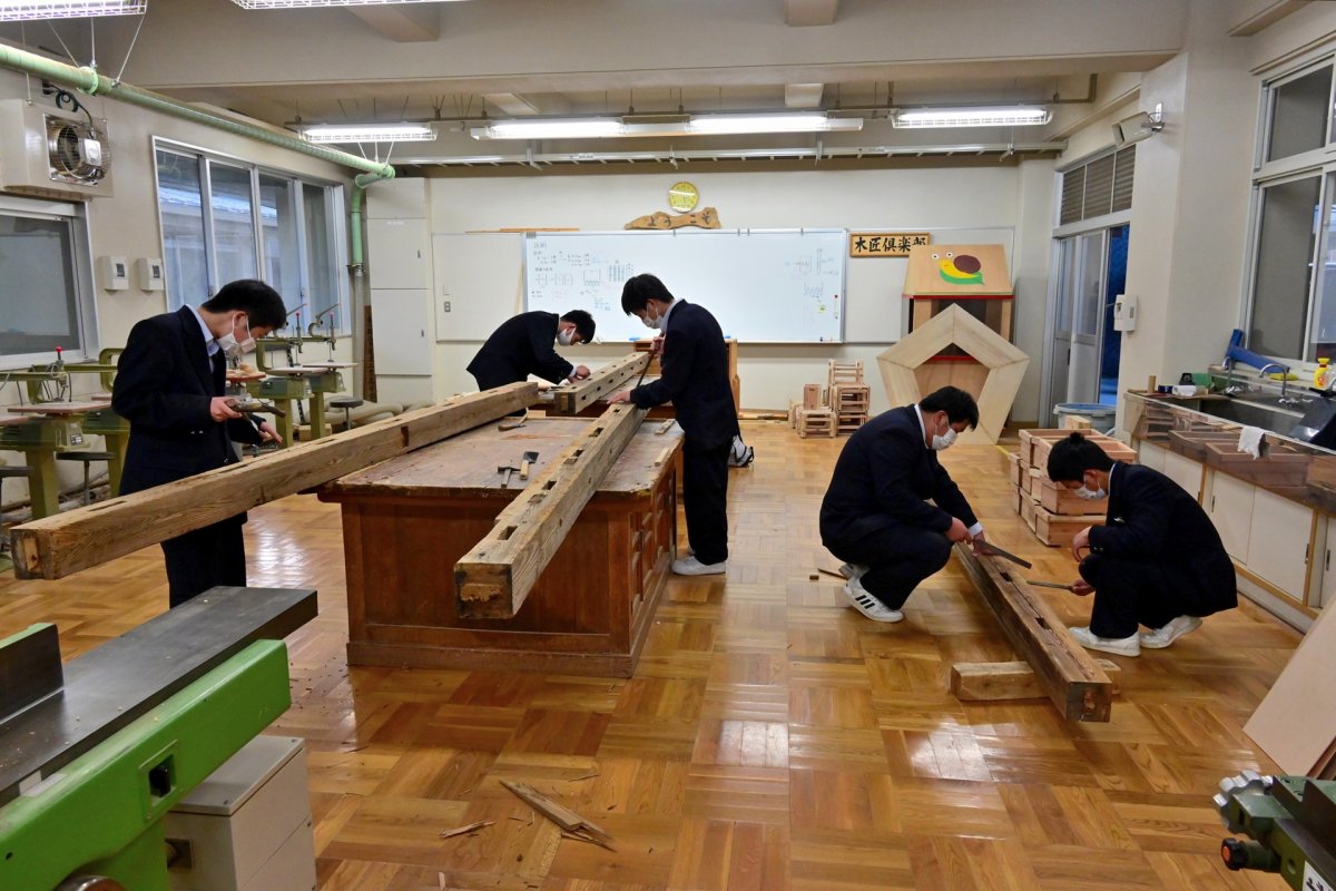 最近はプレカットという機械で刻むので、古材を手作業で刻む高校生なんて、日本でここだけっ!??