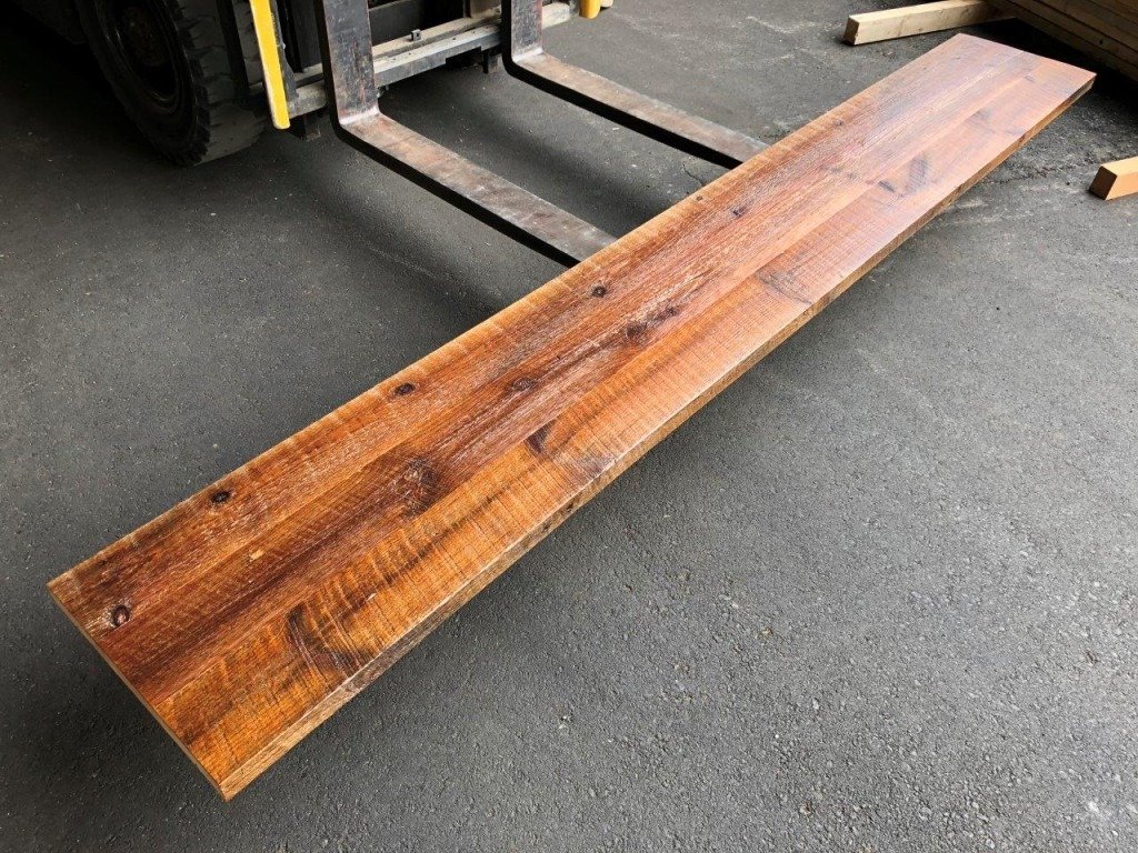 ウレタンクリア塗装によって、全体のトーンが濃くなり、古材の風合いが良く出ています。また表面のざらつきも抑えられています。