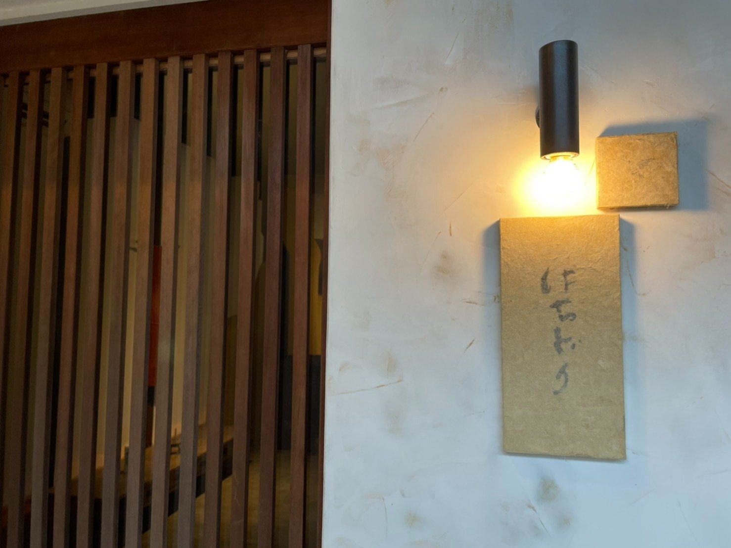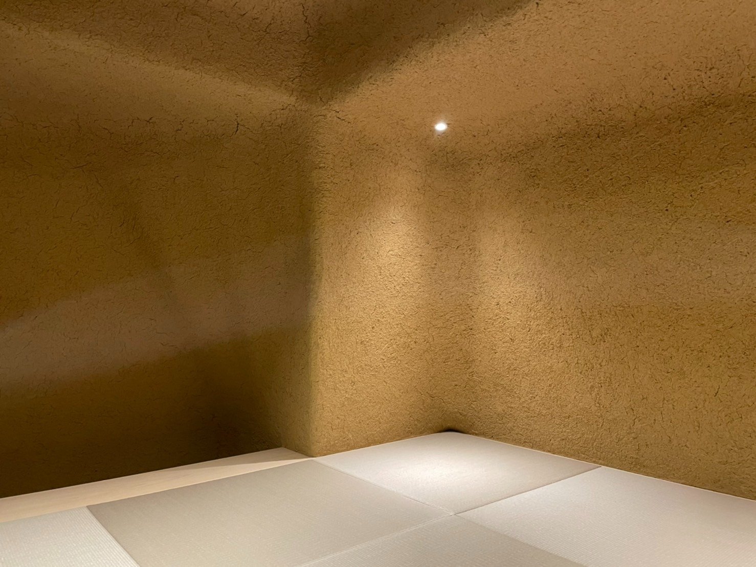 壁や床が和紙なんです。手すきの和紙だそうで、スタイリッシュなのにあたたかみがありますよね。