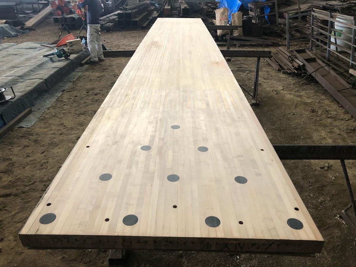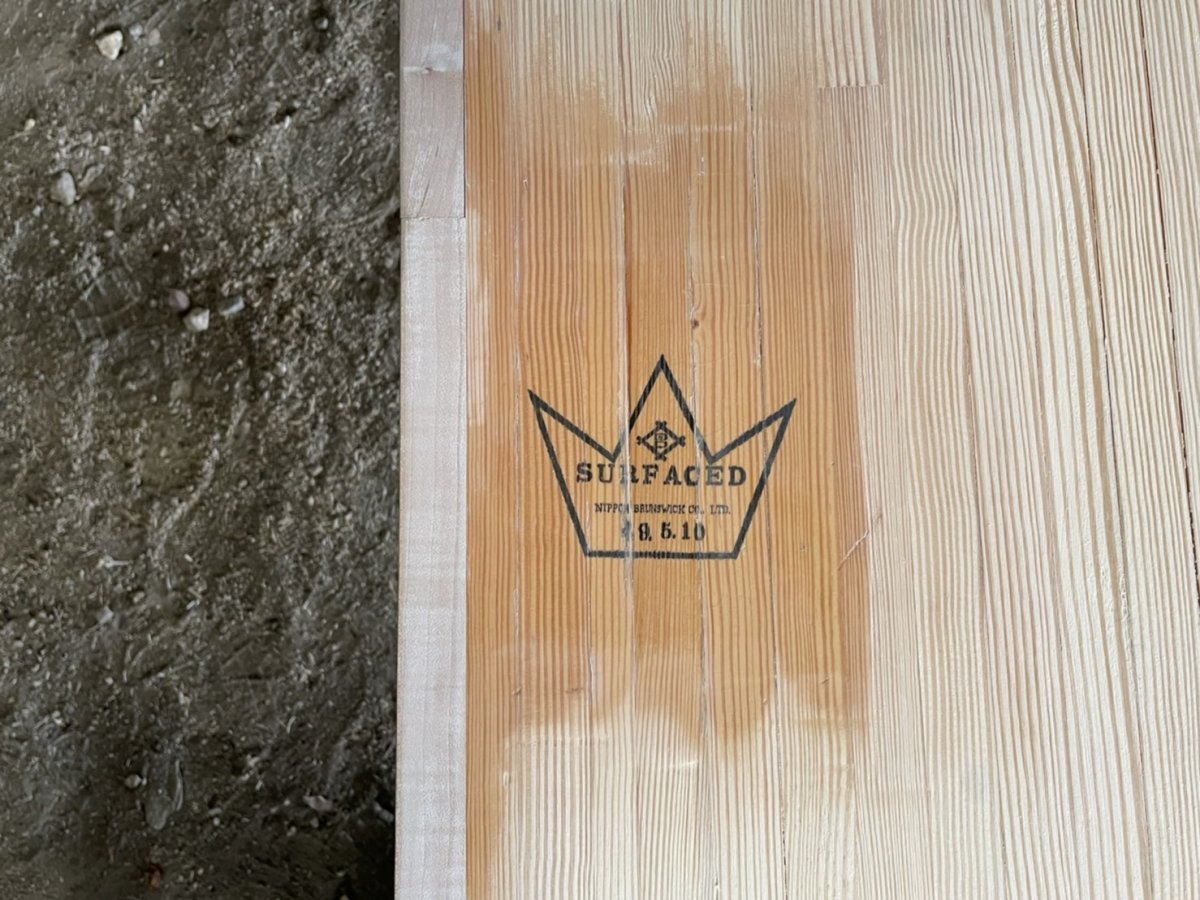 約50年前のボウリングレーンのGETしたのですが表面塗装が剥がれてボロボロだった為