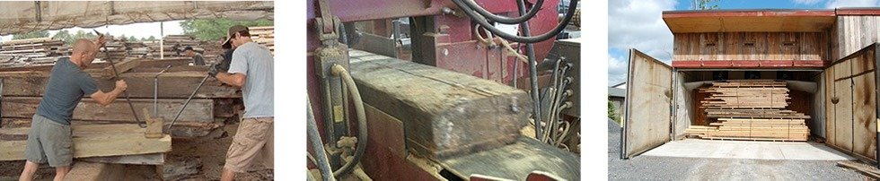 全米各地の納屋・工場・公共施設の解体現場から様々な古材が収集され、トレーラーによってパイオニアミルワークス社が誇る全米最大規模の工場へ運び込まれます。