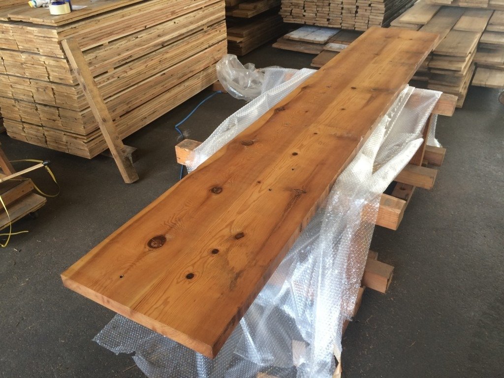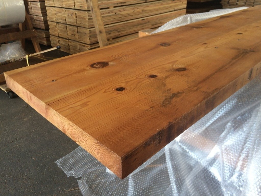 上面はプレーナー加工(カンナで削っています)アパレル店向けなのでささくれを除去するという事と、古材感を抑え気味のデザインということで、この仕上げになっています。