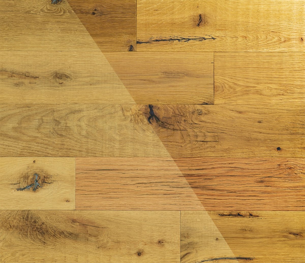 木目を浮き立たせ、さらにサンディング処理でなめらかさを持たせることにより古材でありながら手触りの良いフローリング材です。