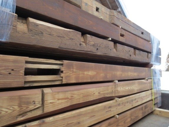 柱材は細身で使いやすい上、ホゾ穴などの古材らしさも十分感じ取れる人気商品です。古民家を支える重要な部材ゆえ梁材とガッチリ組まれており採取が難しい素材ですが、皆様へ安定して供給するため日々コツコツと収集に励んでおります。上質な柱材を是非ご活用ください。