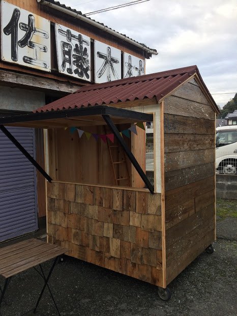 以前から、木製のミニハウスを見ていて古材で作ればカッコよいのになー
