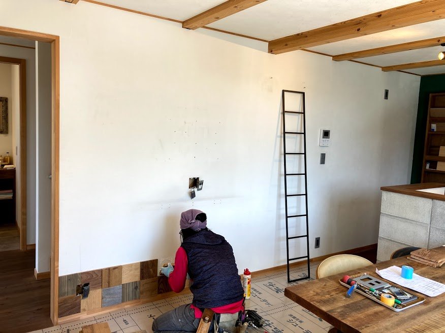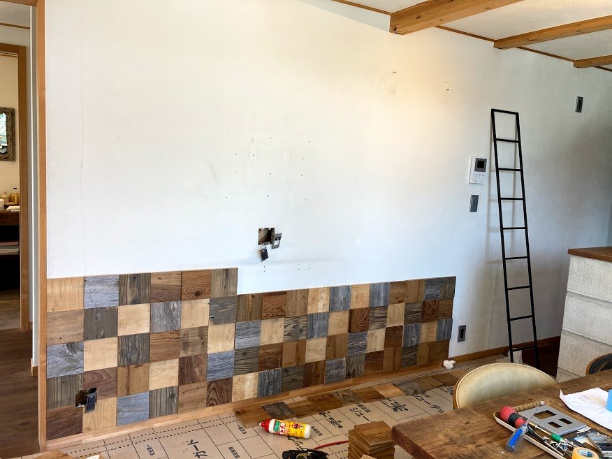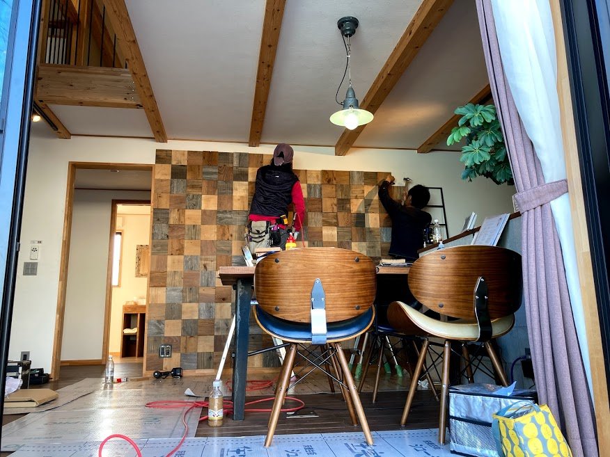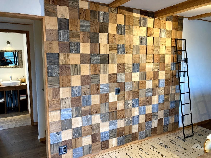 ただ、単純に張っていくのではなく、4-5種類の古材を