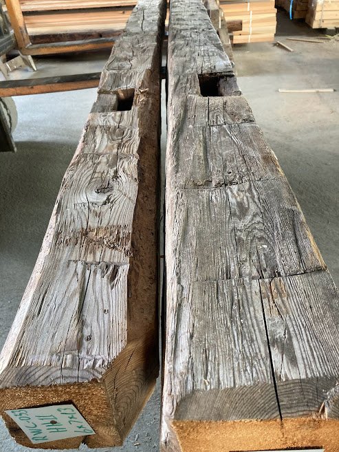 北米から入荷した角材です。最大の特徴は表面に施されたハンドヒューン(HAND-HEWN) つまり「手斧」の跡。その昔、機械が発達していないころ、丸太を手斧で一つ一つ手作業で仕上げて作りあげ角材です。この豪快な手斧の跡が北米の匠の力強さを感じさせます。