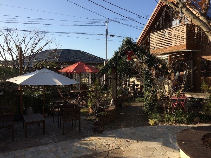 ファサード作成前はカフェ空間の前に間仕切りが無いため、天候の悪い日はお客様の