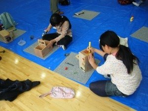 地域の青少年育成部会の皆様の依頼で毎年、この時期に木工教室を開催しています国産杉を使った小物入れをつくりました。予定にはなっかたのですが、絵も書きました。子供は凄い!