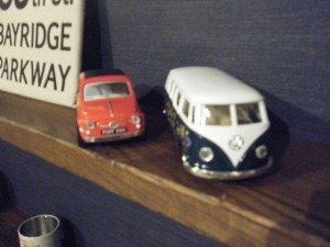 弊社のショールームにも、築100年以上の民家から頂いた古材上に、これも40年位前の車が走ってます(笑)