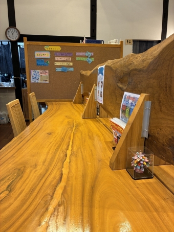 太い梁や柱が存在感を放ち、木の温もりに包まれながら食事を楽しめます。
