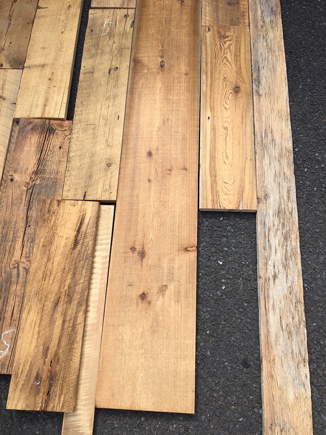 フローリング材と板もの、 樹種も針葉樹と広葉樹ミックス。