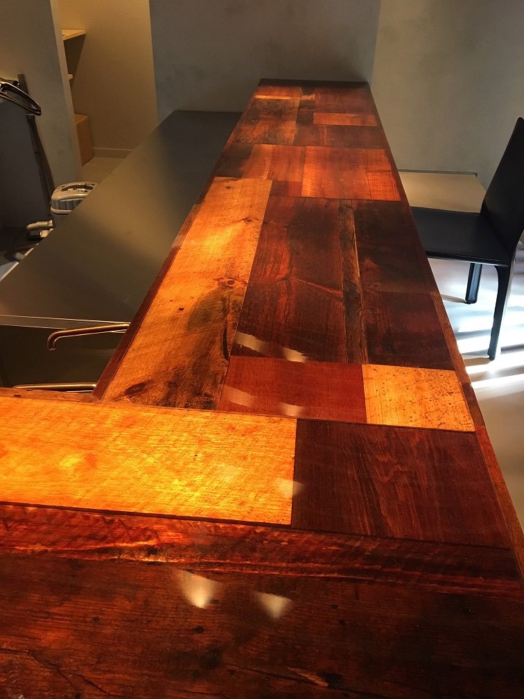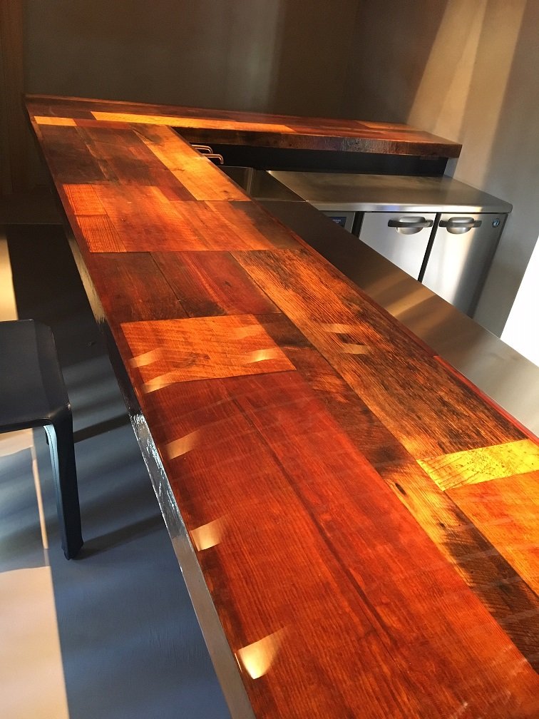 古材選びからスタートし、加工があがったところまでご紹介しましたが こちらが完成したカウンターです。