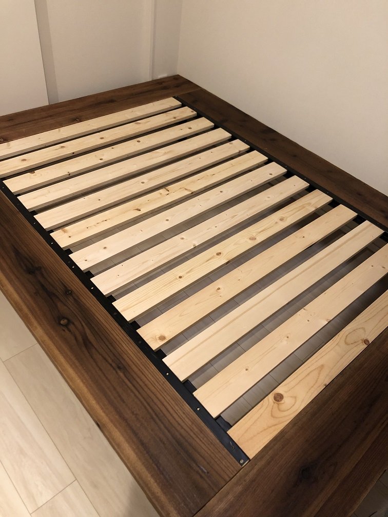 このお客様 他にも古材でベッドの土台も作られて。 こちらも素晴らしい完成度。