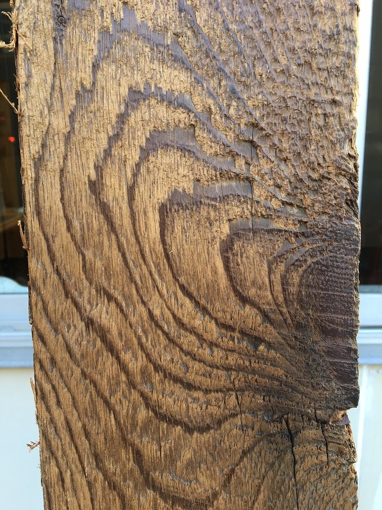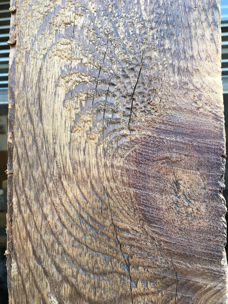 強度があるため、棚板やテーブルの天板などにも十分対応でき、所々入るノコ目跡が更に迫力を増し存在感を強くします。