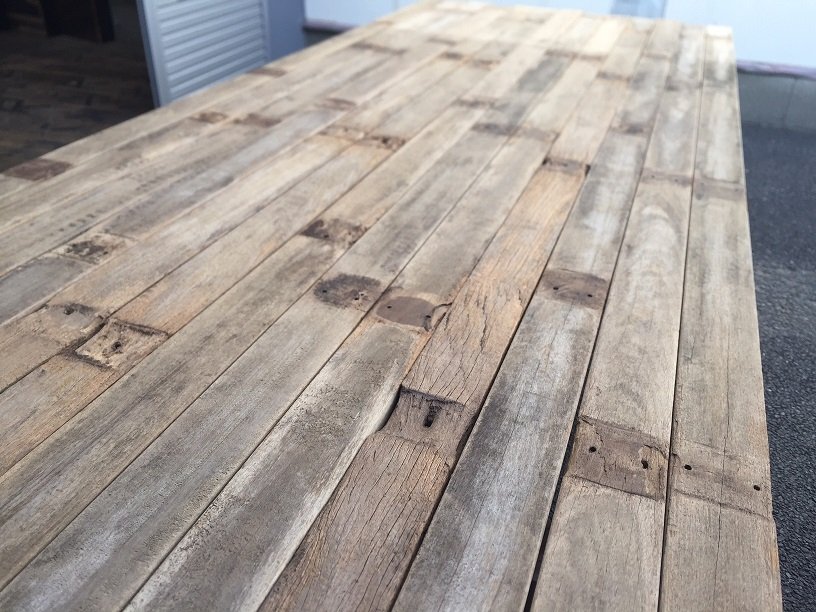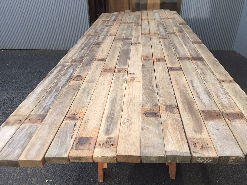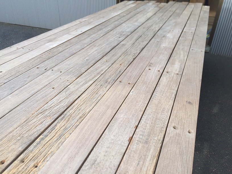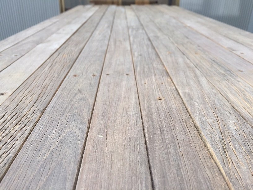 ハードウッドのイペの古材です。無垢材のため銀白化していますがイペ特有の木目、滑らかさは健在です。