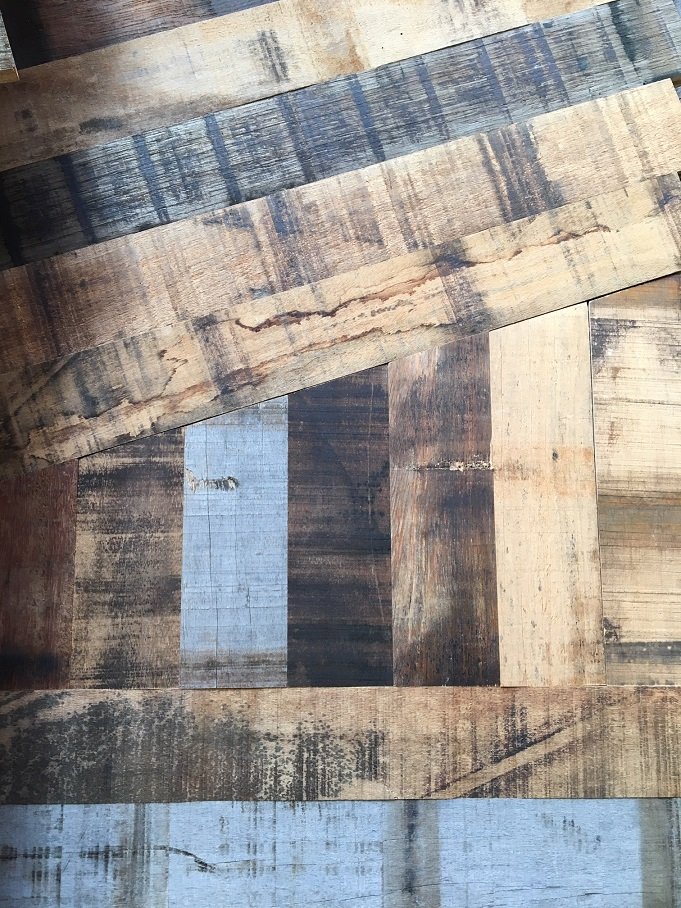 世界中を行き来する海上貨物用コンテナーの床板として使われていた南洋材の古材。