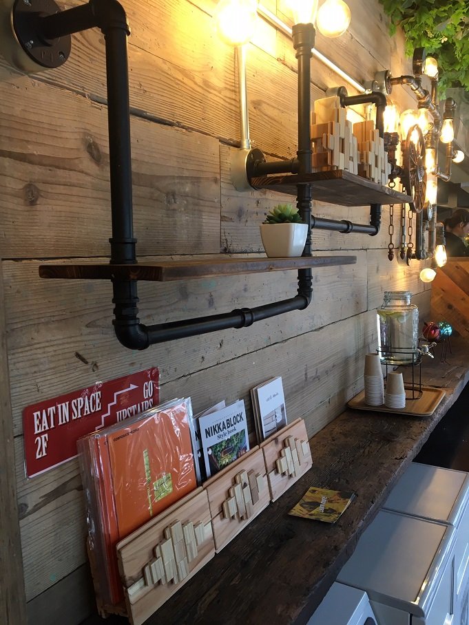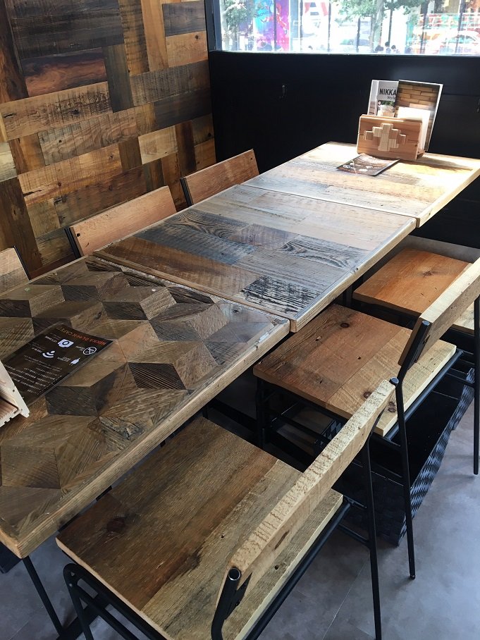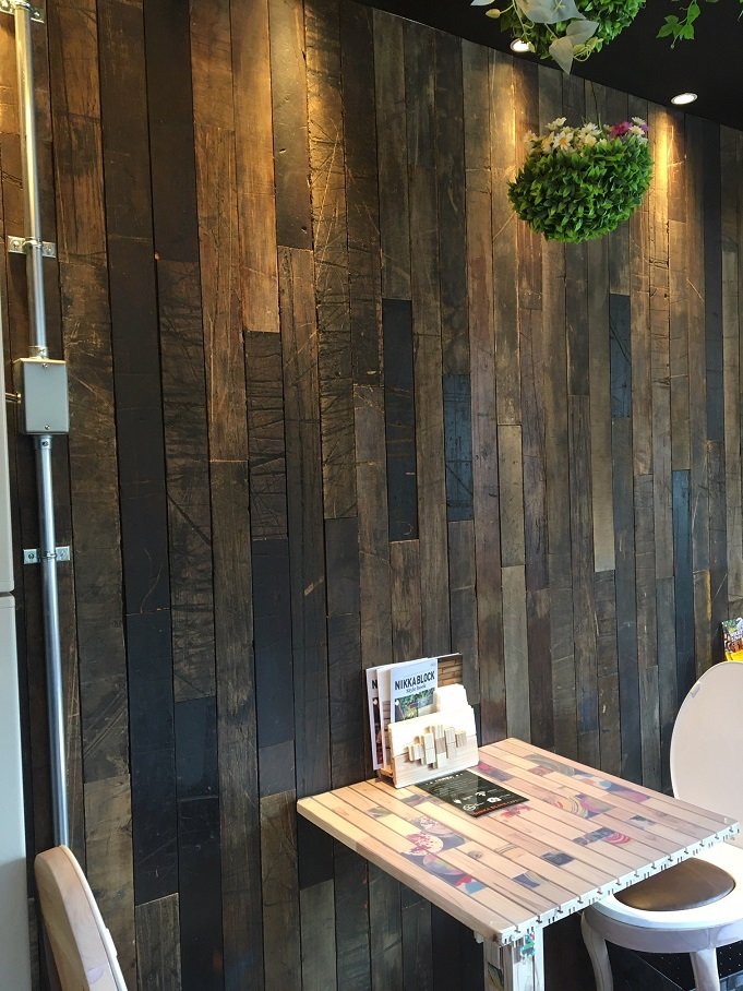 ニッカホームさん独自の商品 ニッカブロック(ウッドタイル)を店内の至る所で使っているのは勿論のこと、 古材日和のショールーム@原宿と言っても過言ではないほど?沢山の古材を採用して頂きました~。