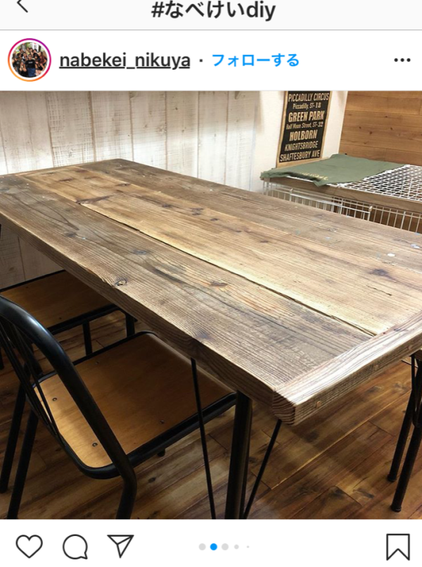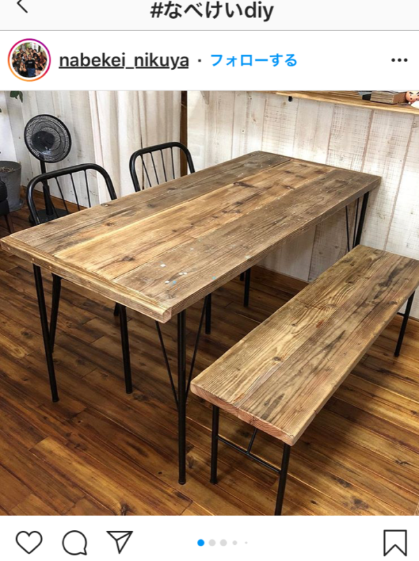 古材を使ったテーブルやカウンターは、中級者におすすめのDIYです。ダイニングの中心にあるテーブルの天板を変えると、お部屋の雰囲気をガラリと変えてくれます。