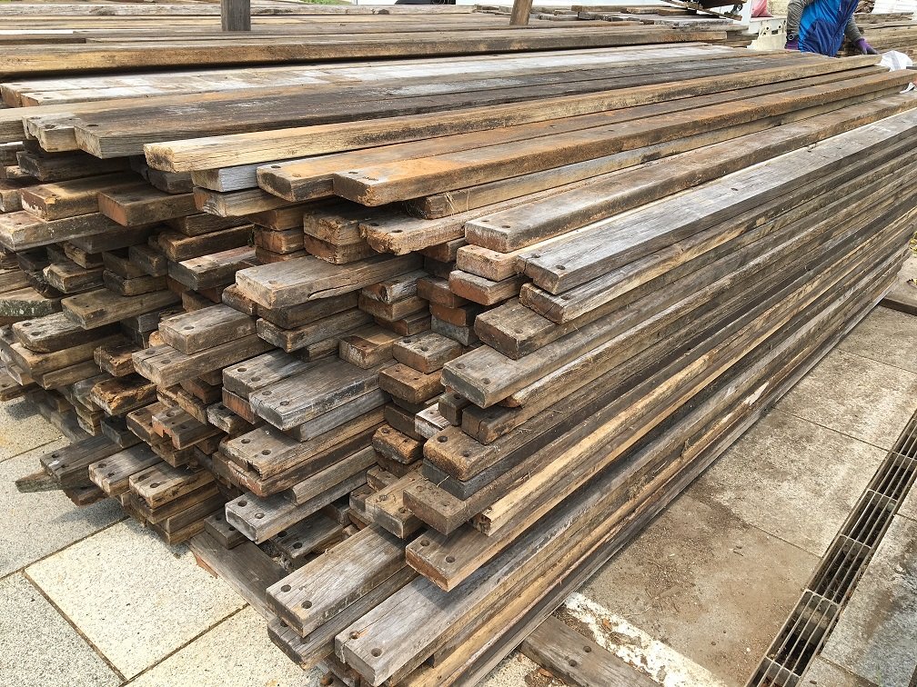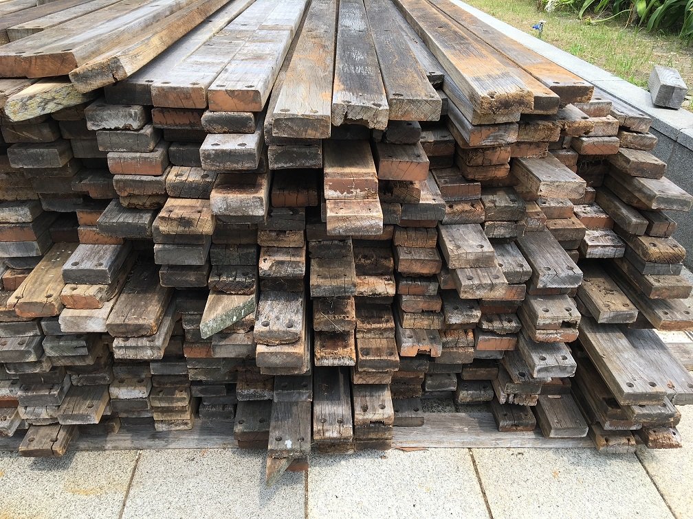 デッキ材としての役目を終えたハードウッド古材のボードウォーク。