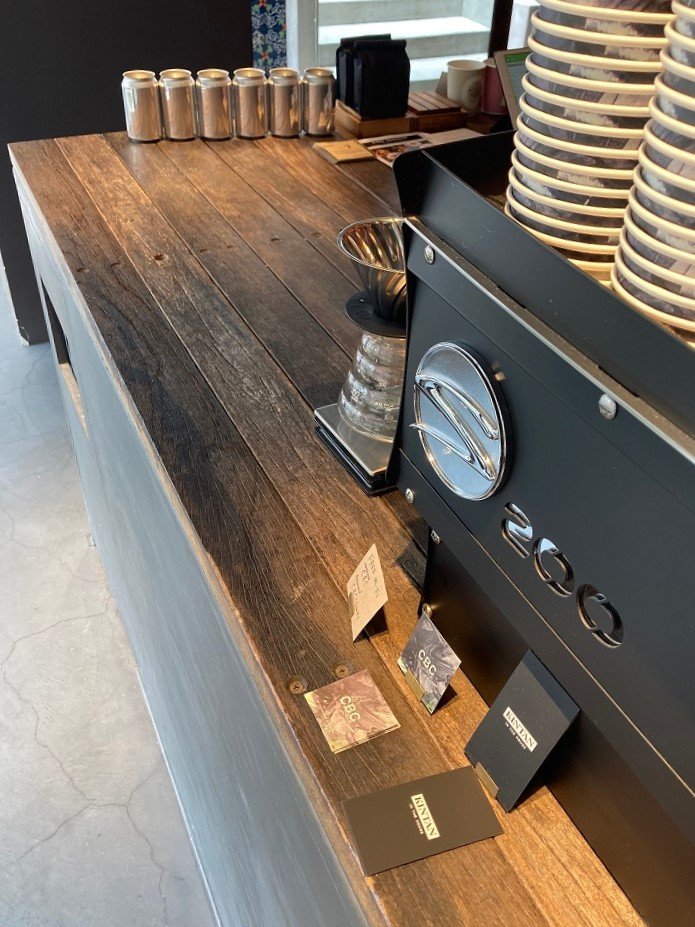 お店のカウンター・テーブル・ベンチに生まれ変わりました。
