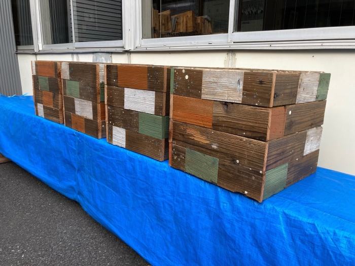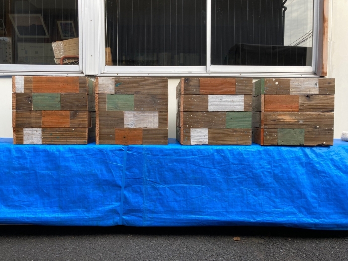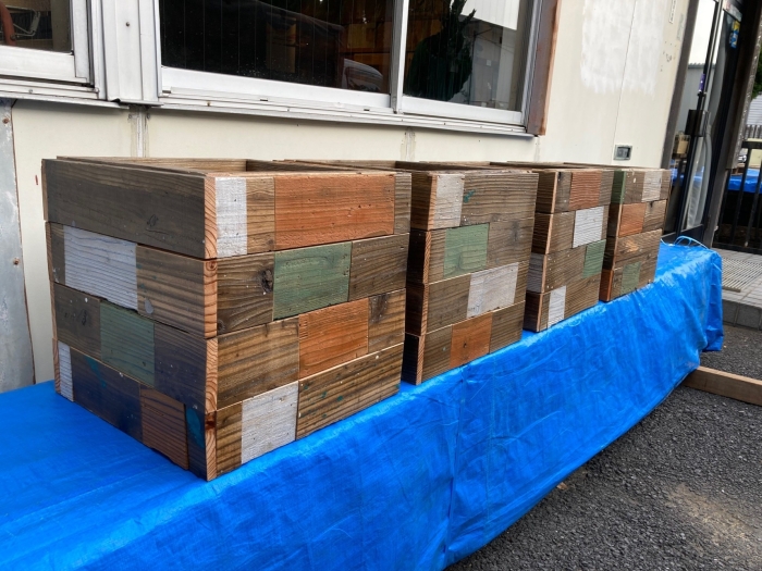 そのショップ内に古材足場板ユーズドプレーンを使ったボックス(オブジェ)が置かれております。