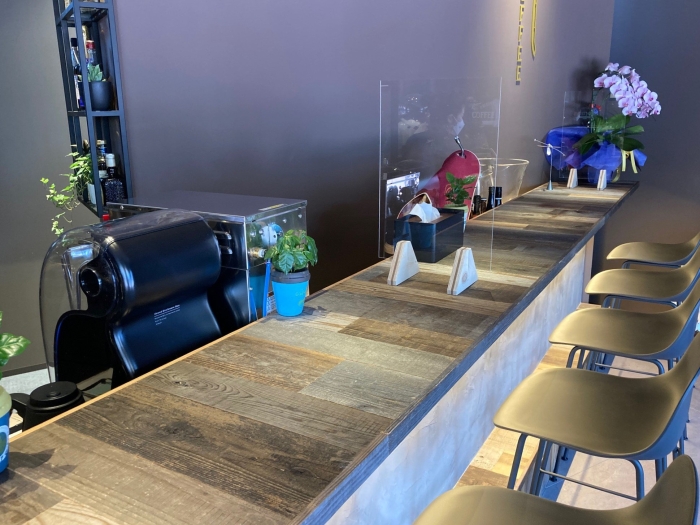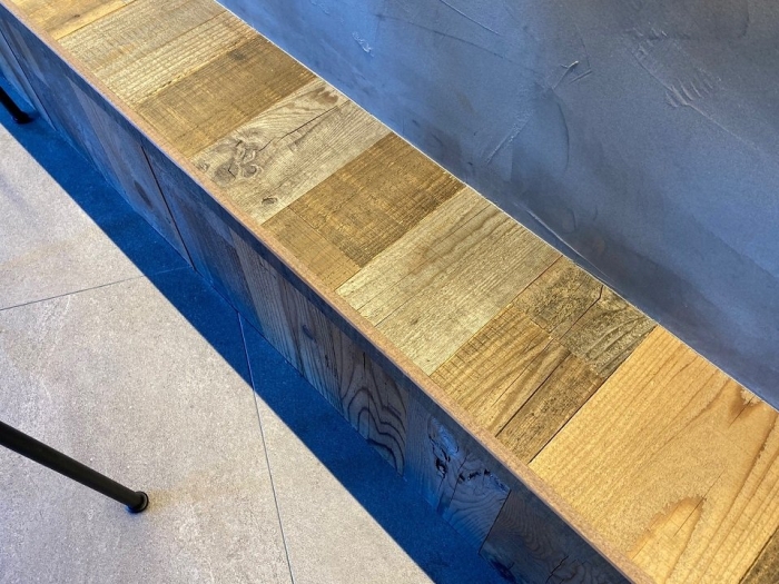 お店のカウンター周りとカウンター下の足置き部分に「レイクボード」を使って頂きました♪