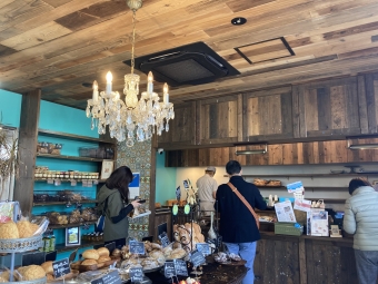 テーブルには焼き立てのパンが並び 次々お客さんが来るので写真を撮るのも一苦労・・