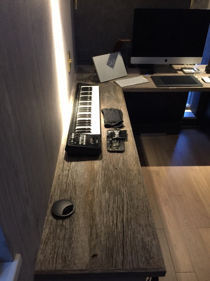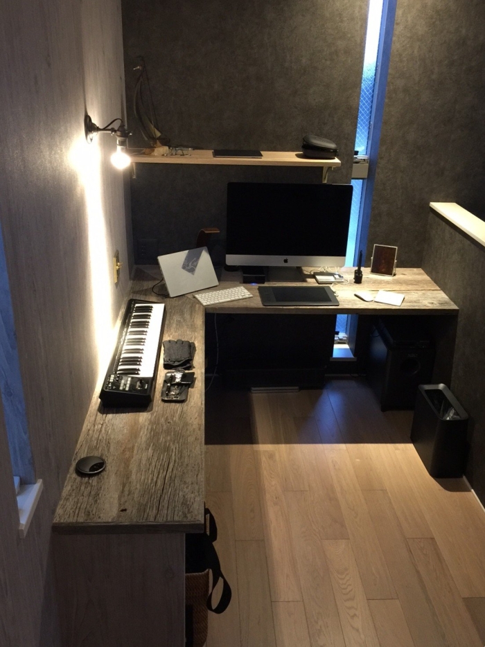 ワークスペースに USボードグレーを使ったL字カウンター