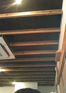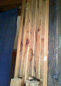 看板のかかった柱にも割いたユーズドプレーンを使ったり、、