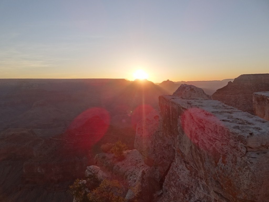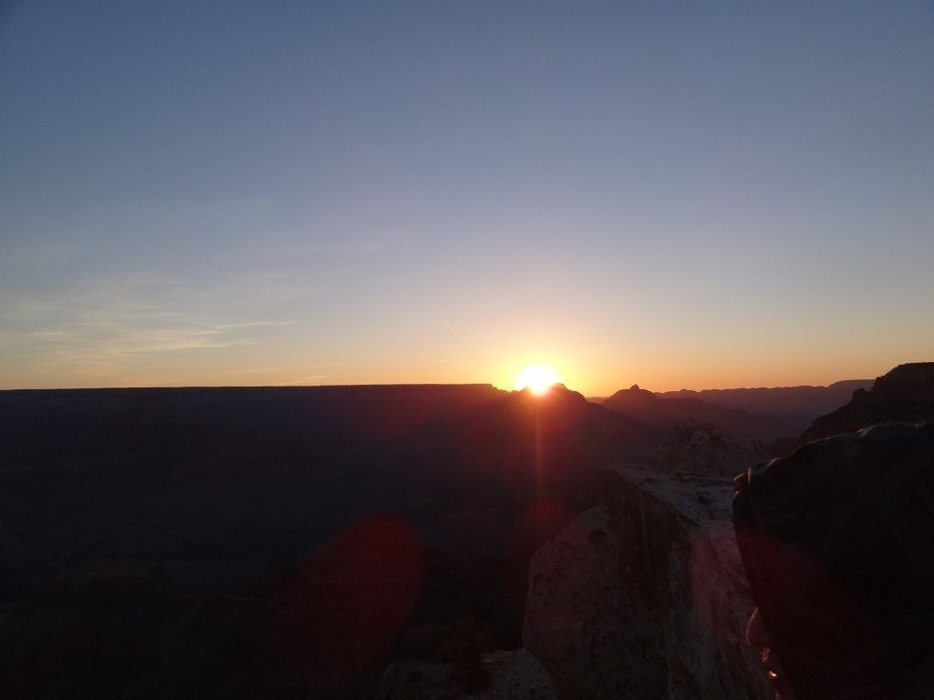 写真はグランドキャニオンの朝日が昇るところ。
