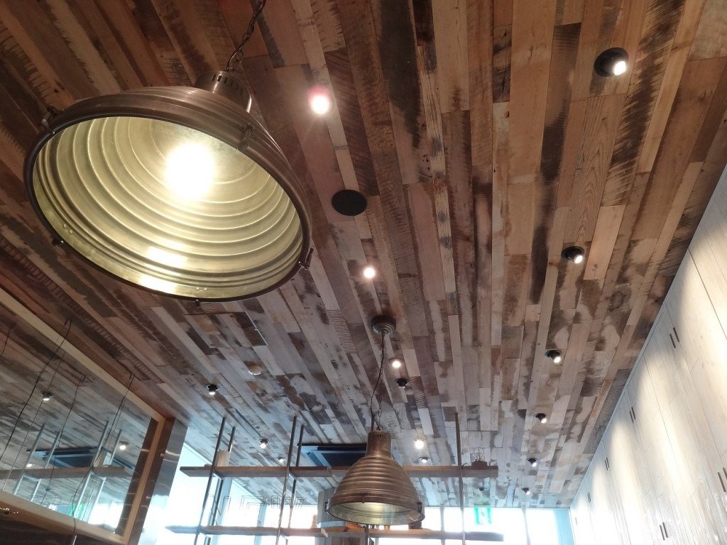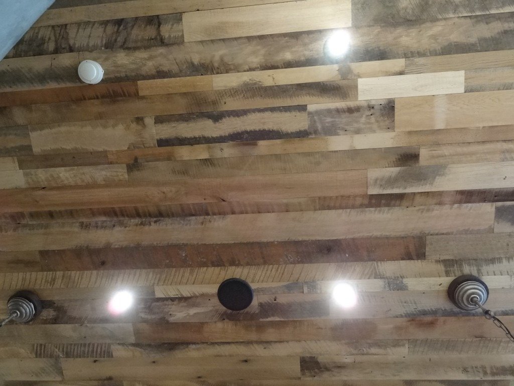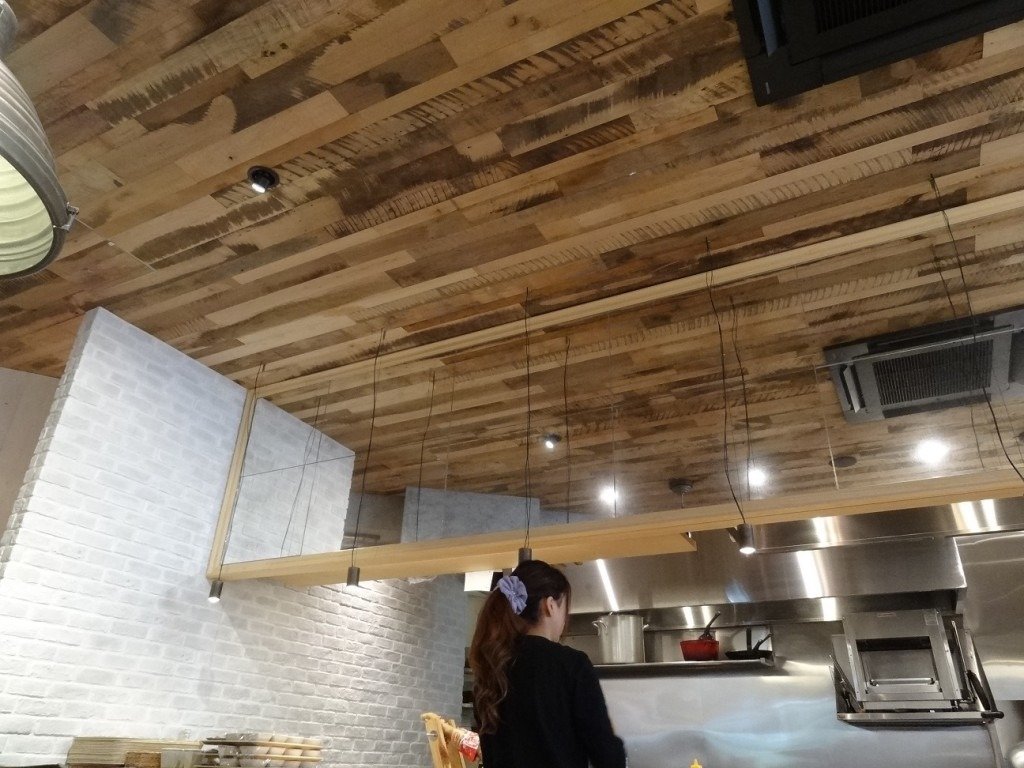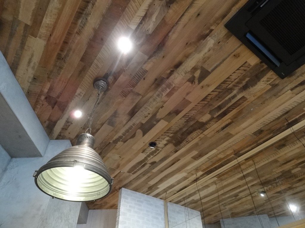 沢山の古材フローリングを使って頂きました、、天井に!