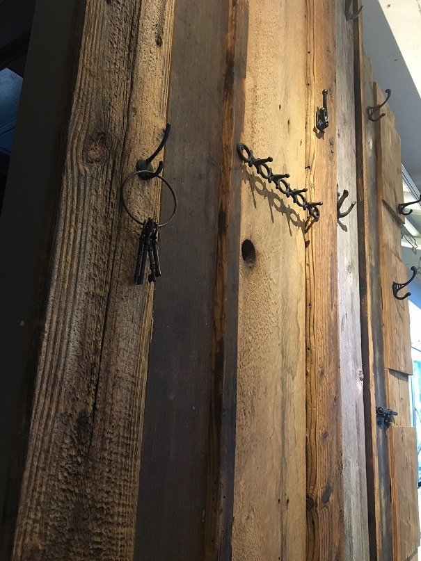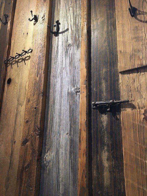 そしてそのまま奥に進んで行くと、、、正面の壁にも古材が。。
