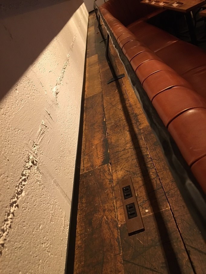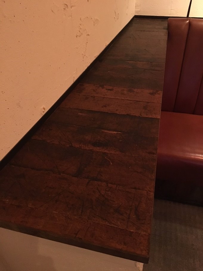 ここの店舗内にパイオニアミルワークスの古材 Foudry Mapleを使って頂いています。