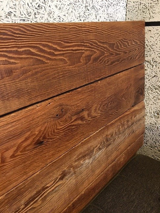納屋や倉庫の内部から採取された古材は、ノコ目跡や当時の風合いが100年以上経過した今でもそのまま保たれており、当時のどこか懐かしい温かみのある素材感がとても人気の板材です。貼りあがった時の存在感は抜群です。古材好きが最後に必ず行きつく商品としても知られています。