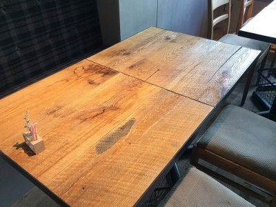 ご要望に応じて特注の古材カウンターやテーブル天板を制作しておりますので、お気軽にご相談ください。また、規格商品(OEM供給)などのご要望も承ります。