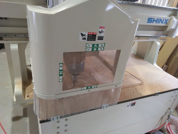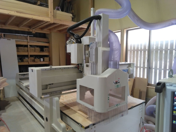 こちらの古材テーブルの製作は、(有)加賀谷建築事務所 様にご協力いただきました。加工に使用したNCルーター加工機は、主に超硬ルータービットなどを使って木材、樹脂等、様々な素材に切断、彫刻、段付き加工などの精巧な加工が行えます。NCとは「Numerical Control(数値制御)」の略で、ルーターとは工具としての「くり抜き機」を意味しています。レーザー彫刻とは違いは、材料表面からの加工深さを0.01mm単位でも決められることと、発炎による変質や変色がないことがあげられます。