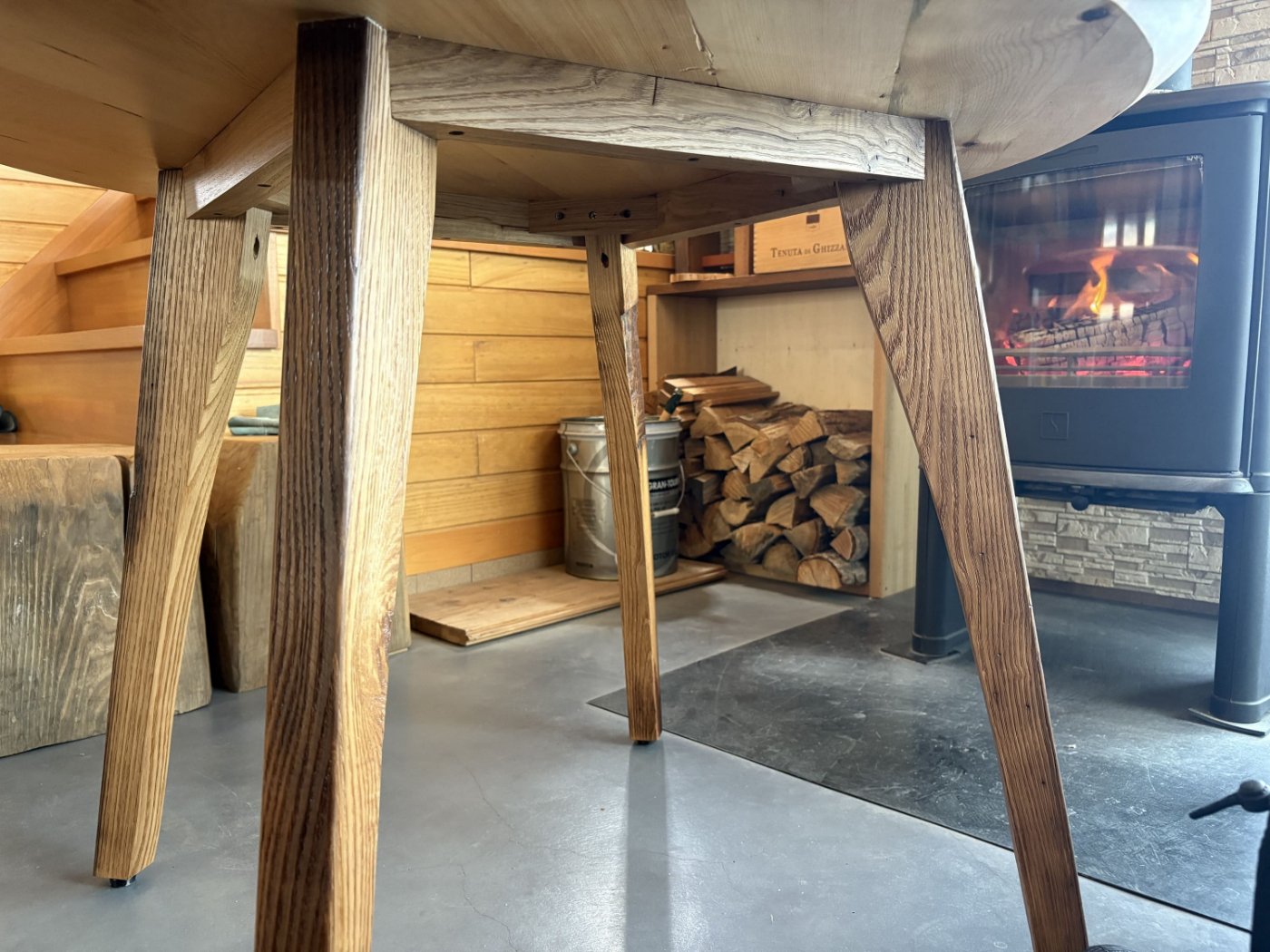 今回使用したこの古材アカマツは木目が詰まっており、ヤニが少なく、穏やかで優しい色合いが特徴的です。