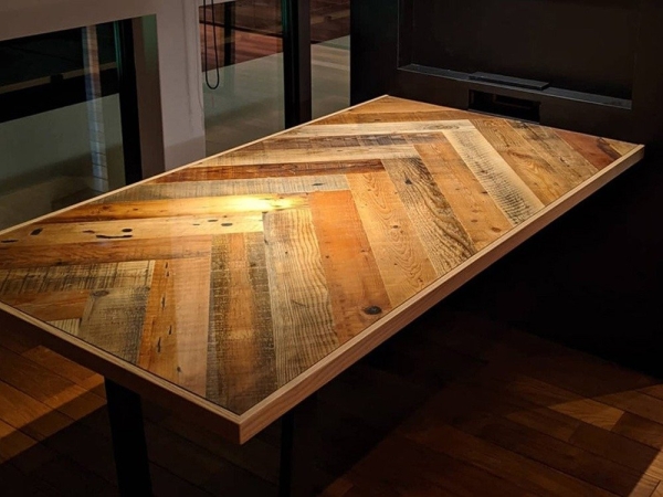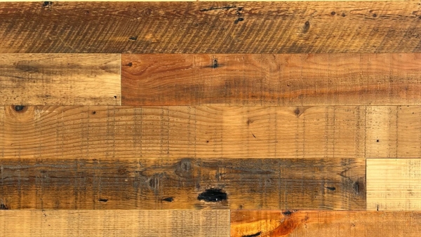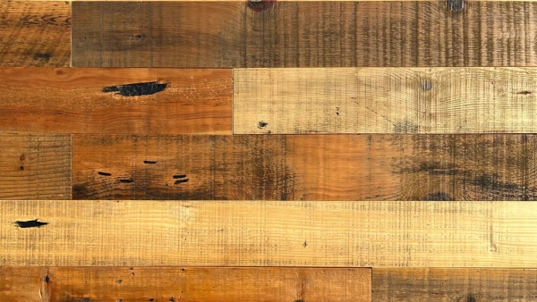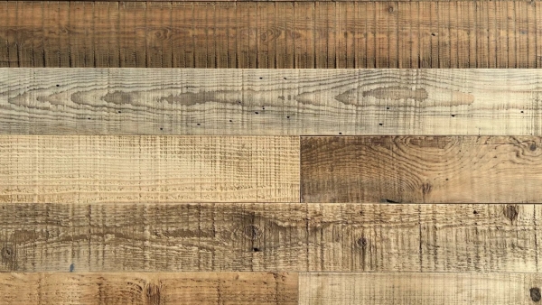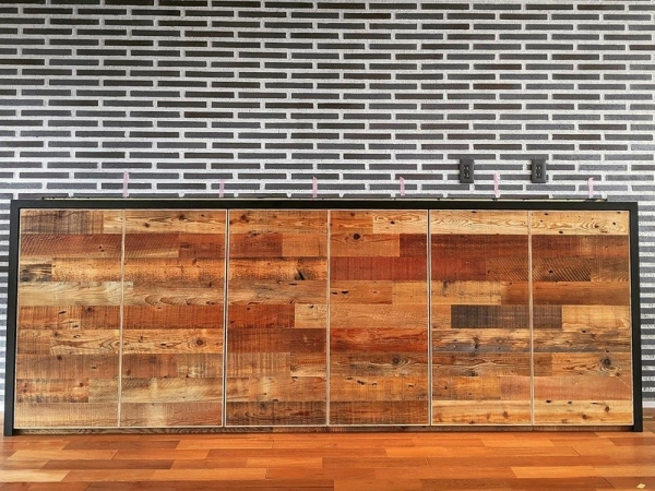 古材の表面をサンディング処理し、なめらかさを重視した商品です。古材の粗々しい風合いは魅力があるものの、ささくれやケバ立ちが気になるお客様や、受け入れにくい用途に向けて開発しました。無塗装はソフトなイメージですが、ウレタンクリア塗装を施すとより重厚なイメージに仕上がり古材感が際立ちます。