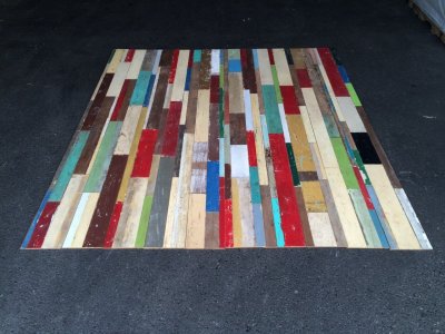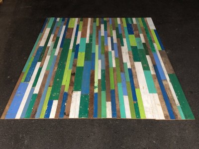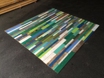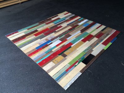 色合いは レッド・クリーム ブルー・グリーン ミックス の3種類。薄いパネル仕上げは什器や壁に使い易く、ポップな色彩と素材の高級感がトロピカルチークパネルの魅力です。
