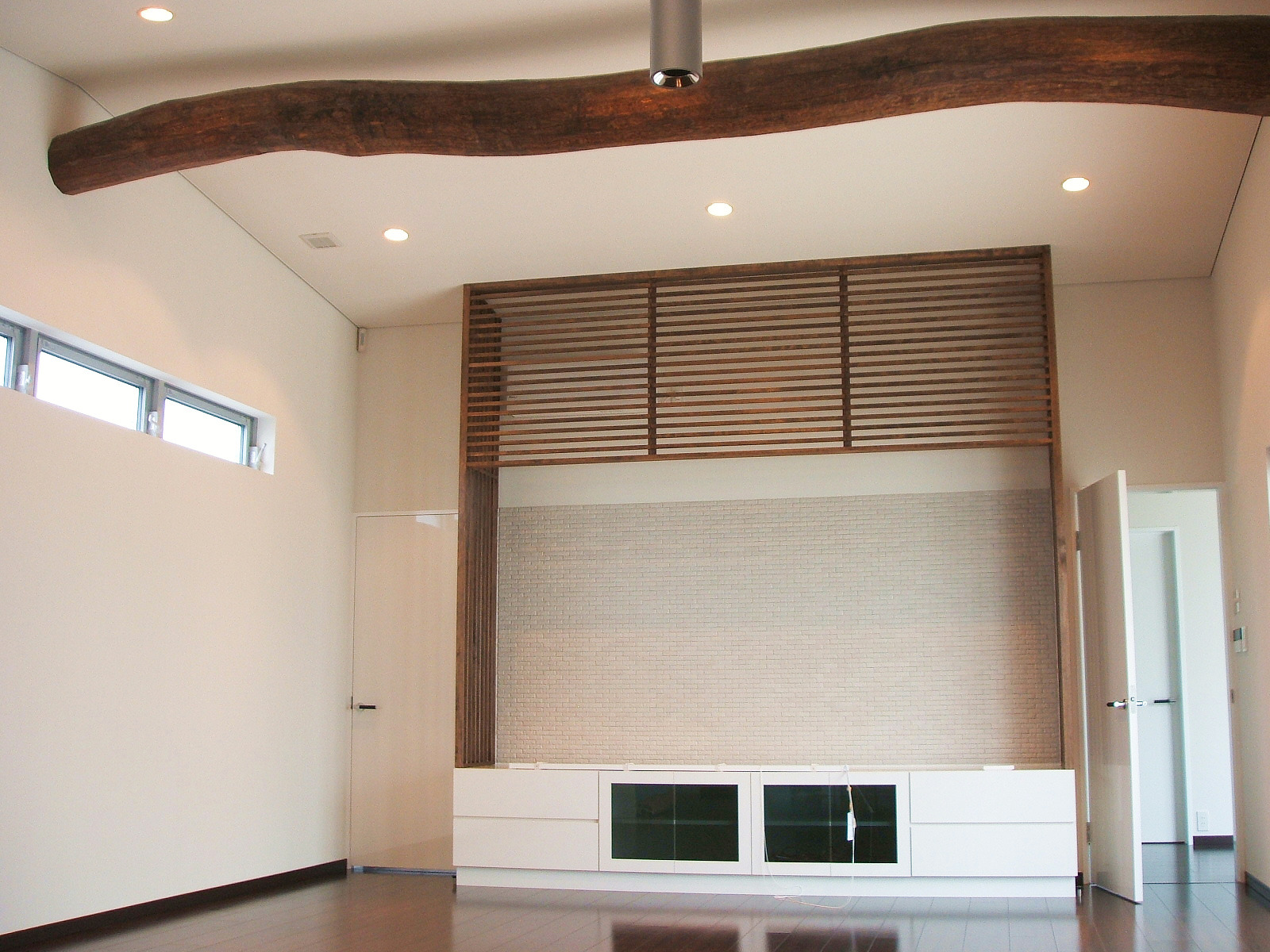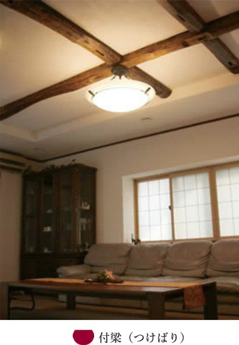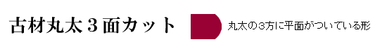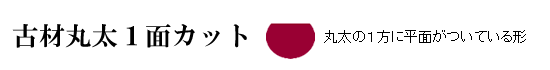 丸太の1方を製材(カット)して作られるこの形、主に施工の際の設置面を安定させる為にもちいられます。天井に丸太をつけたい、壁に丸太をつけたい、といった場合に、丸太のままでは曲面ですのできちんと設置できません。そこで1面をカットして平面をつけるのです。丸太が天井や壁に埋め込まれているかのように、見事な収まりとなります。