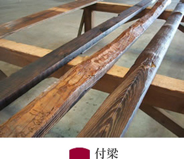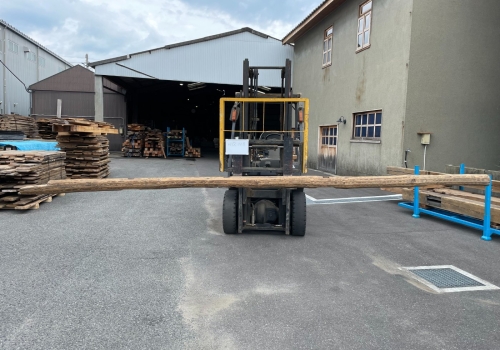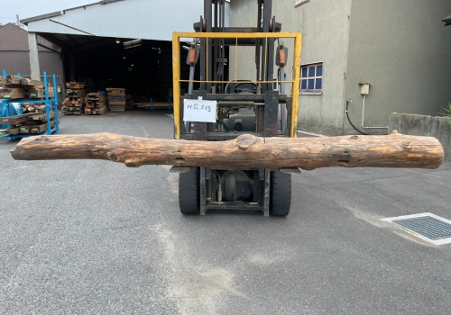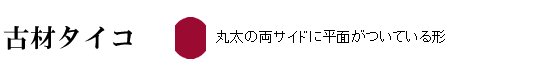 丸太の両サイドに平面がついているもの、これを「タイコ」型といいます。丸太の両サイドを製材(カット)して作られます。古材丸太の両サイドを製材してタイコ型にすることにより、用途が広がると同時に、扱いやすさも向上します。 丸太のままでは扱いが難しい、壁圧などの都合で決まった厚みにしたい、そんな時にタイコ型がぴったりです。