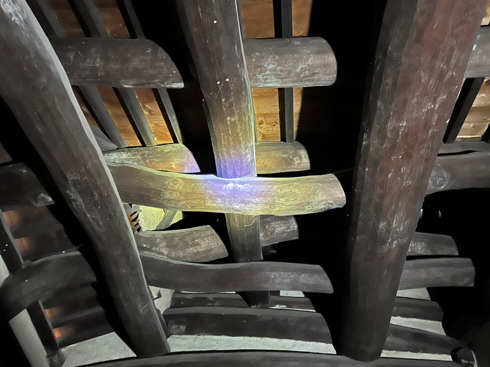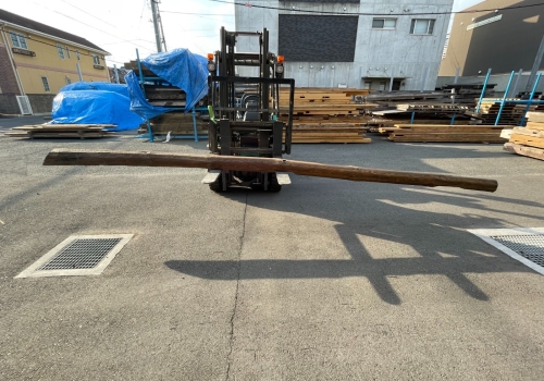 丸太は国産古材でもっともポピュラーな素材です。形状や表情は千差万別、スラッと穏やかなものもあれば曲がりくねっているもの、凹凸のないプレーンな表情のものもあれば大工さんが刻んだチョウナ模様が入ったものなど、1本1本それぞれが人間のようにあふれる個性をもつまさに古材らしい古材です。