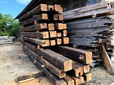 主に梁材として活用されていた角材は、扱いやすく安定した人気をもつ素材です。雪国で採取される巨大なものから温暖な地域で採取される細めのものまで、大きさは様々で、皆様のご要望に応じてアレンジしていきます。また製材(カット)による寸法調整や加工を行うことで、より一層使い安いアイテムへ変化させていくことも可能です。