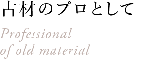 私共は全員が木材業を営んでおり、古材の特殊性の知識と共に、木材の基礎知識も持ち合わせております。